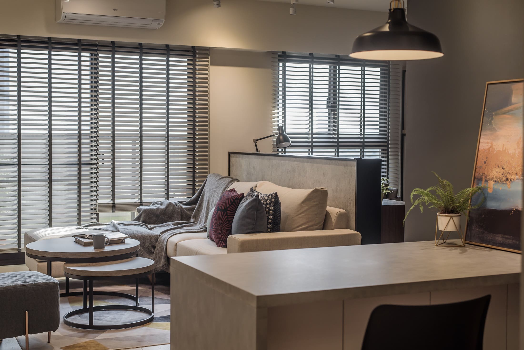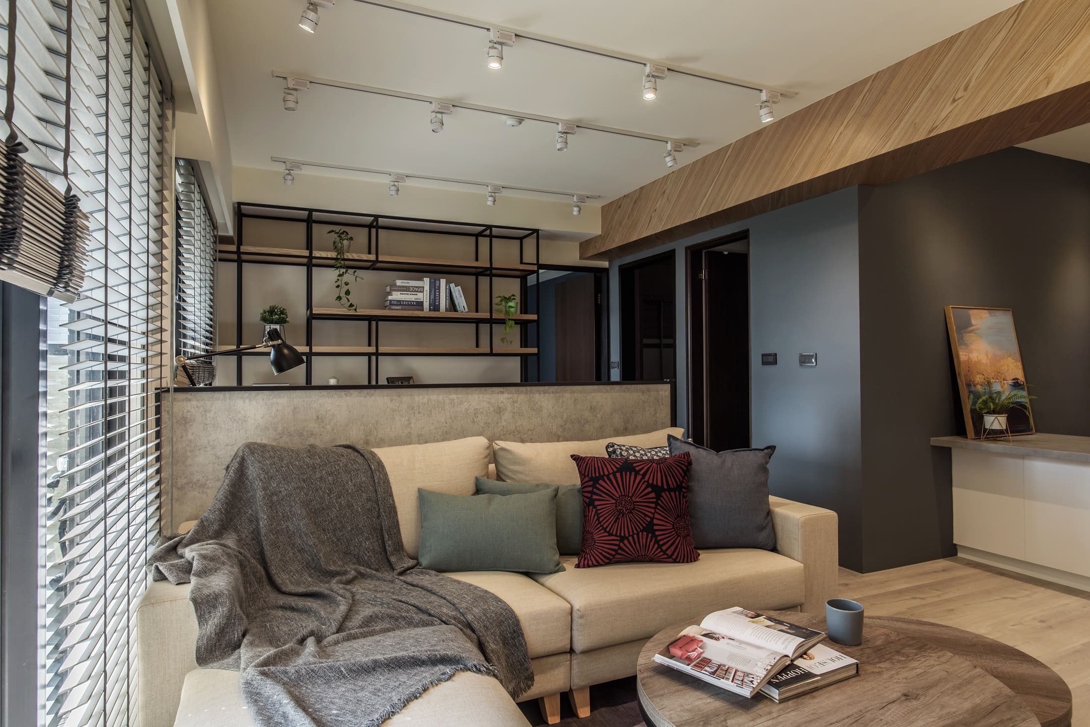 躺在沙發上或坐或臥,一杯咖啡一本喜愛的書,都是最喜歡的生活方式,就算不小心睡著也是沉溺在幸福的夢裡;生活就是沒有空間侷限,在哪裡都可以放鬆的工作,小小空間的連結,就把一家人的感情串連起來了。