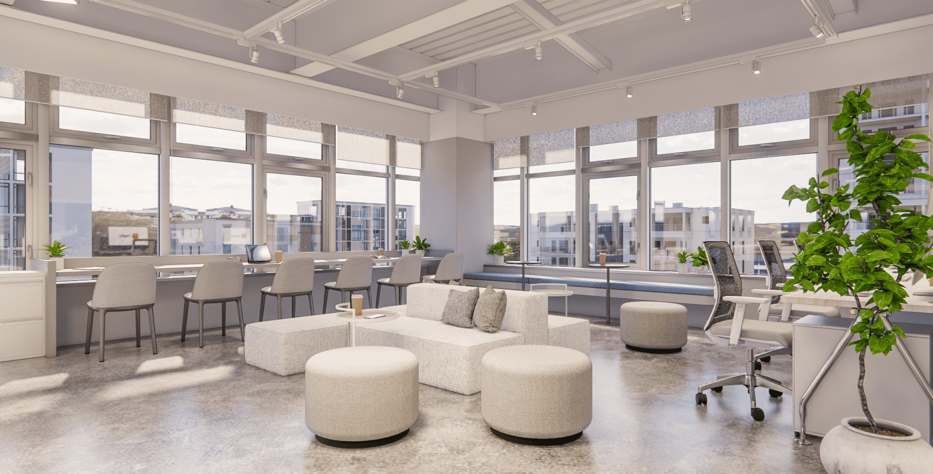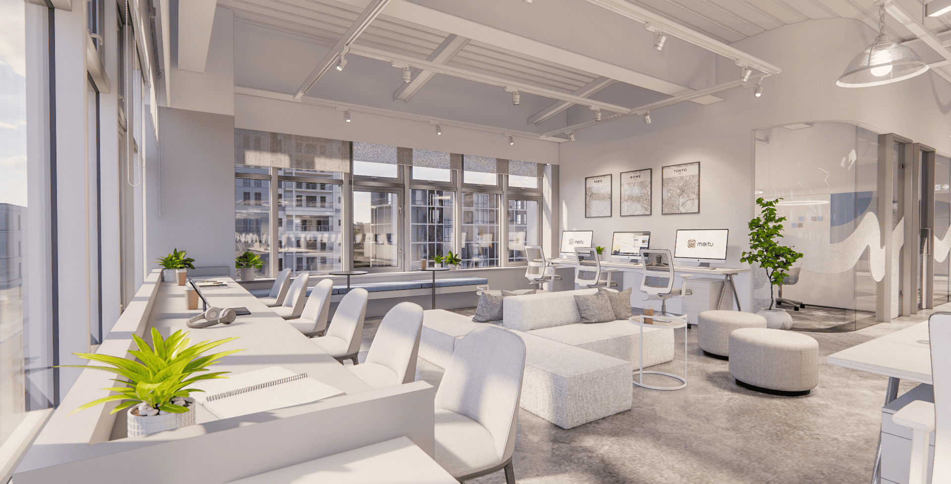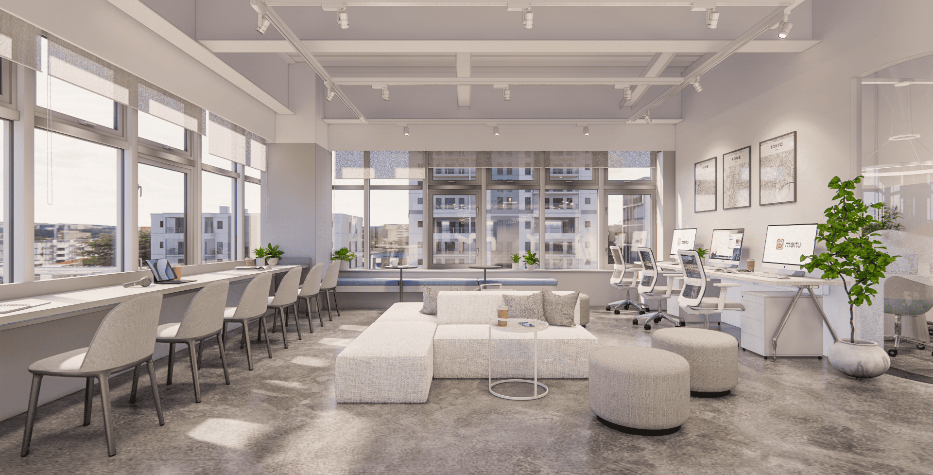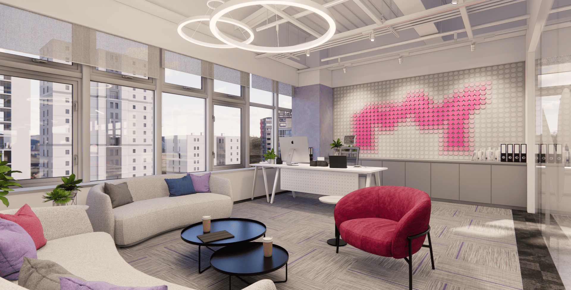 我們特意打破了傳統辦公室的沉悶,用柔軟的沙發取代隔板,用藝術畫作點綴牆面。在這裡,你可以隨手拿一杯咖啡,在採光極佳的落地窗旁坐下,讓陽光成為你最天然的修圖濾鏡。