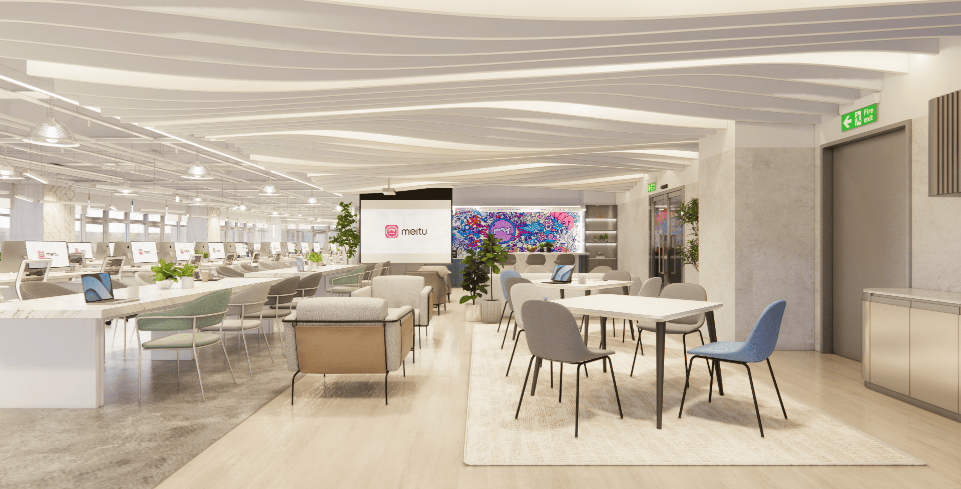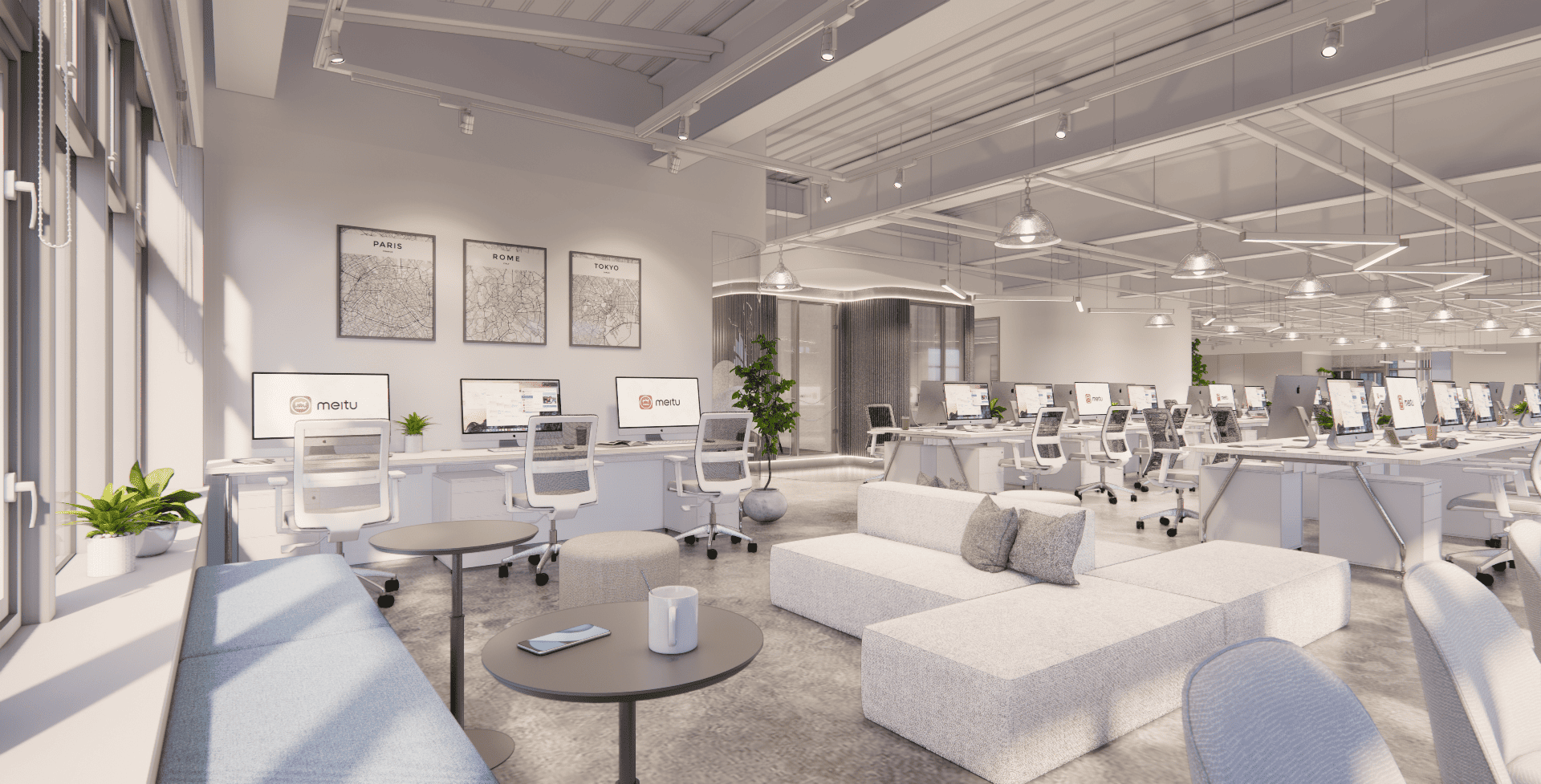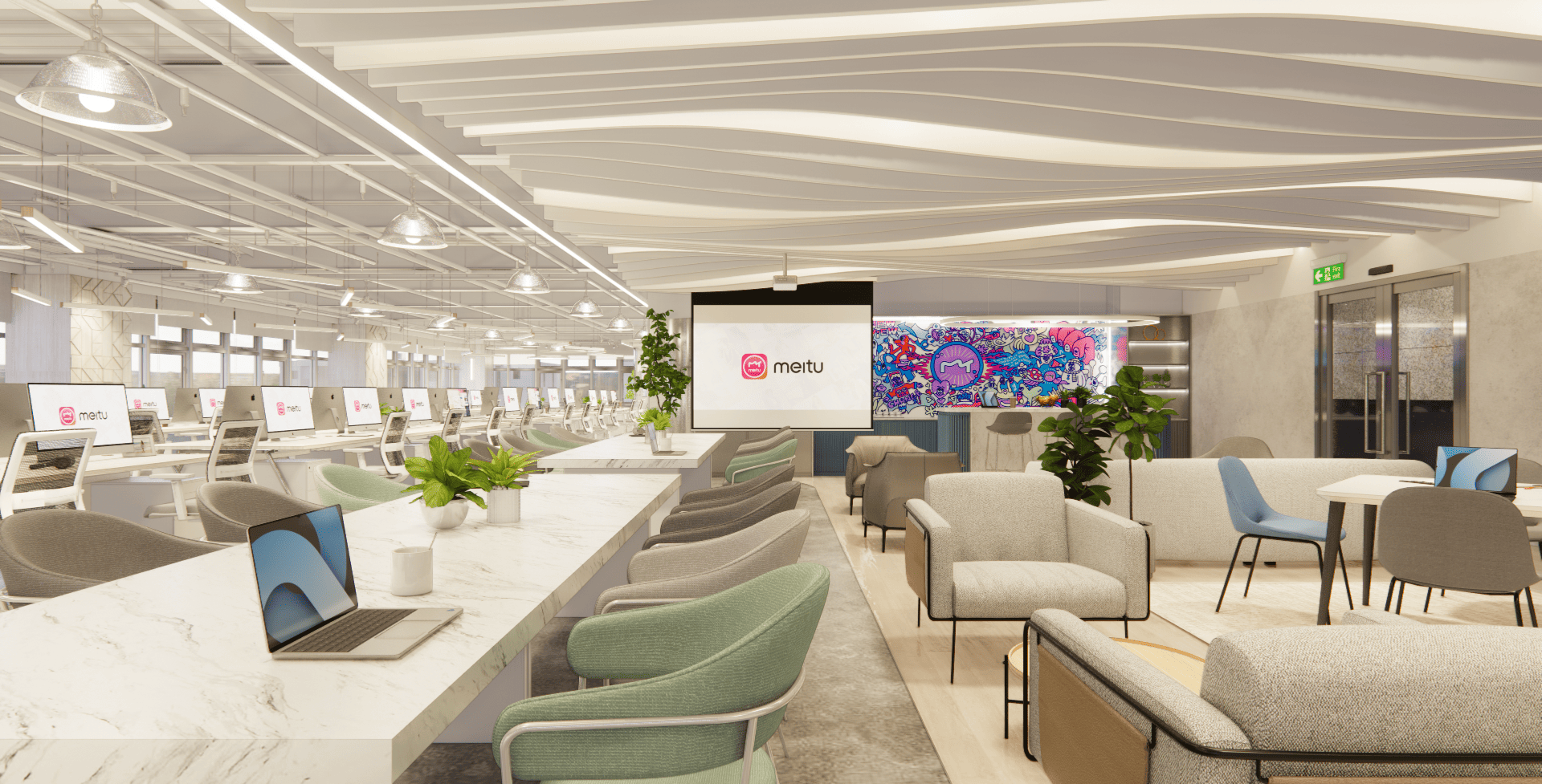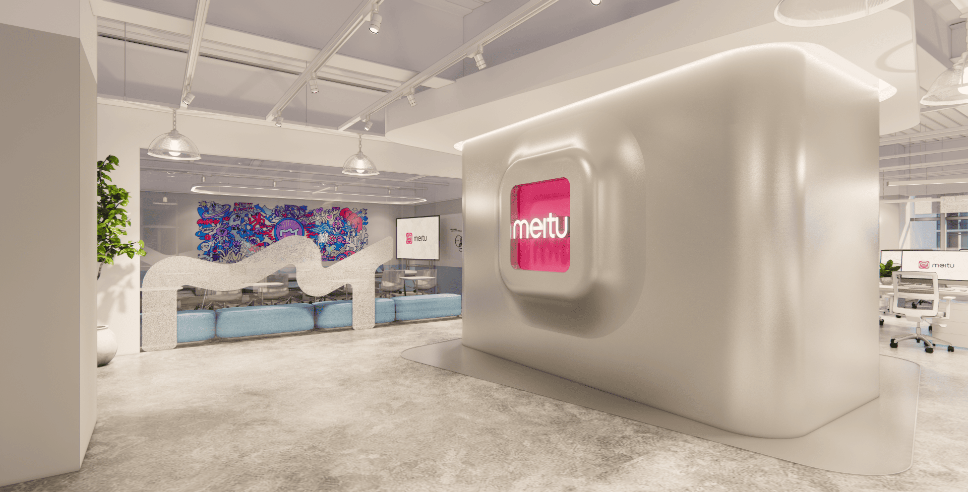 好的設計,從來不只是坐在螢幕前敲打鍵盤,而是源於對生活空間的細膩感知。走進美圖的辦公室,你會先被那如同雲朵般的流線型燈帶所吸引,光影在簡潔的白色空間中交織,彷彿思緒也在這裡得到了延展。