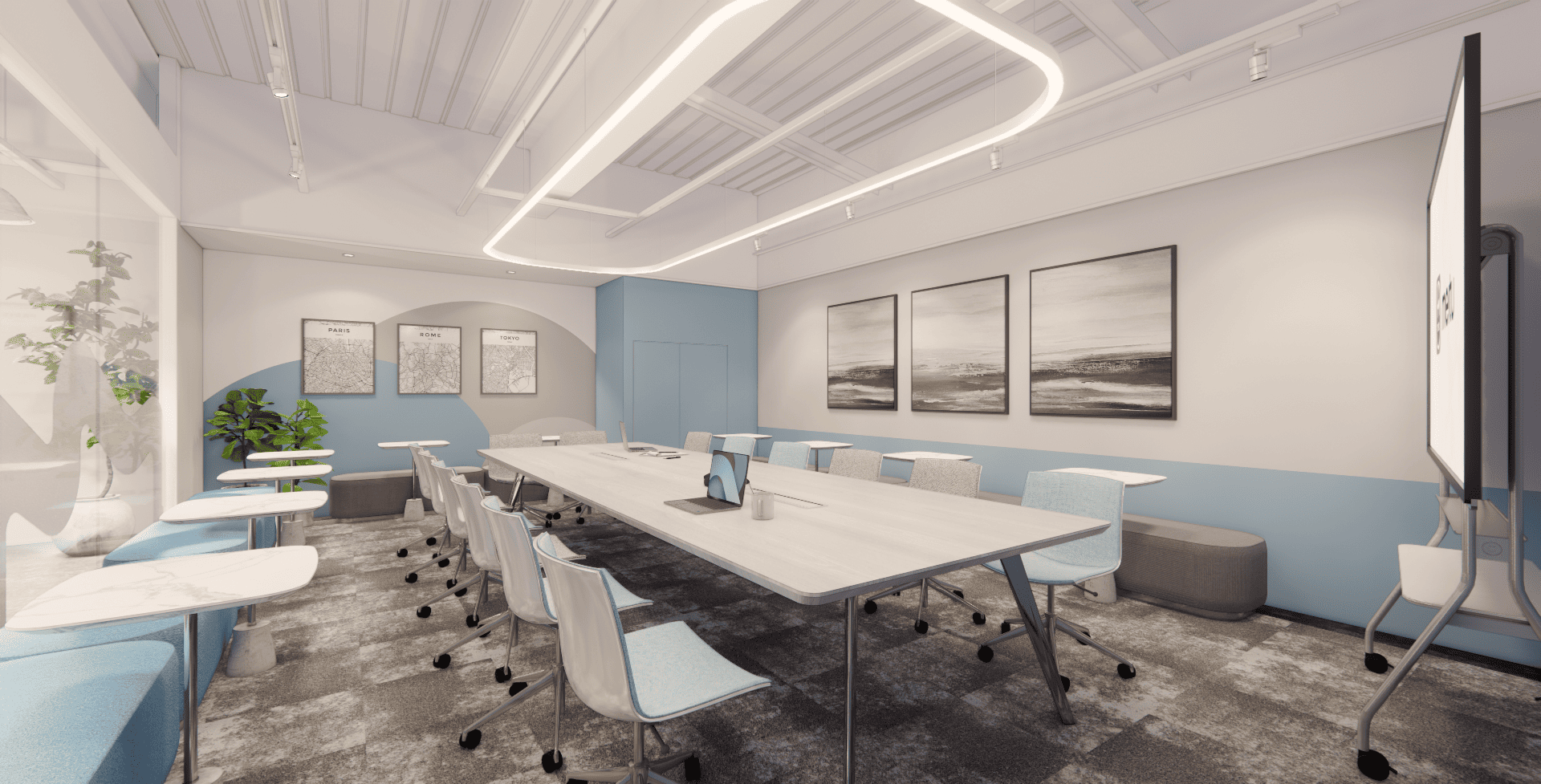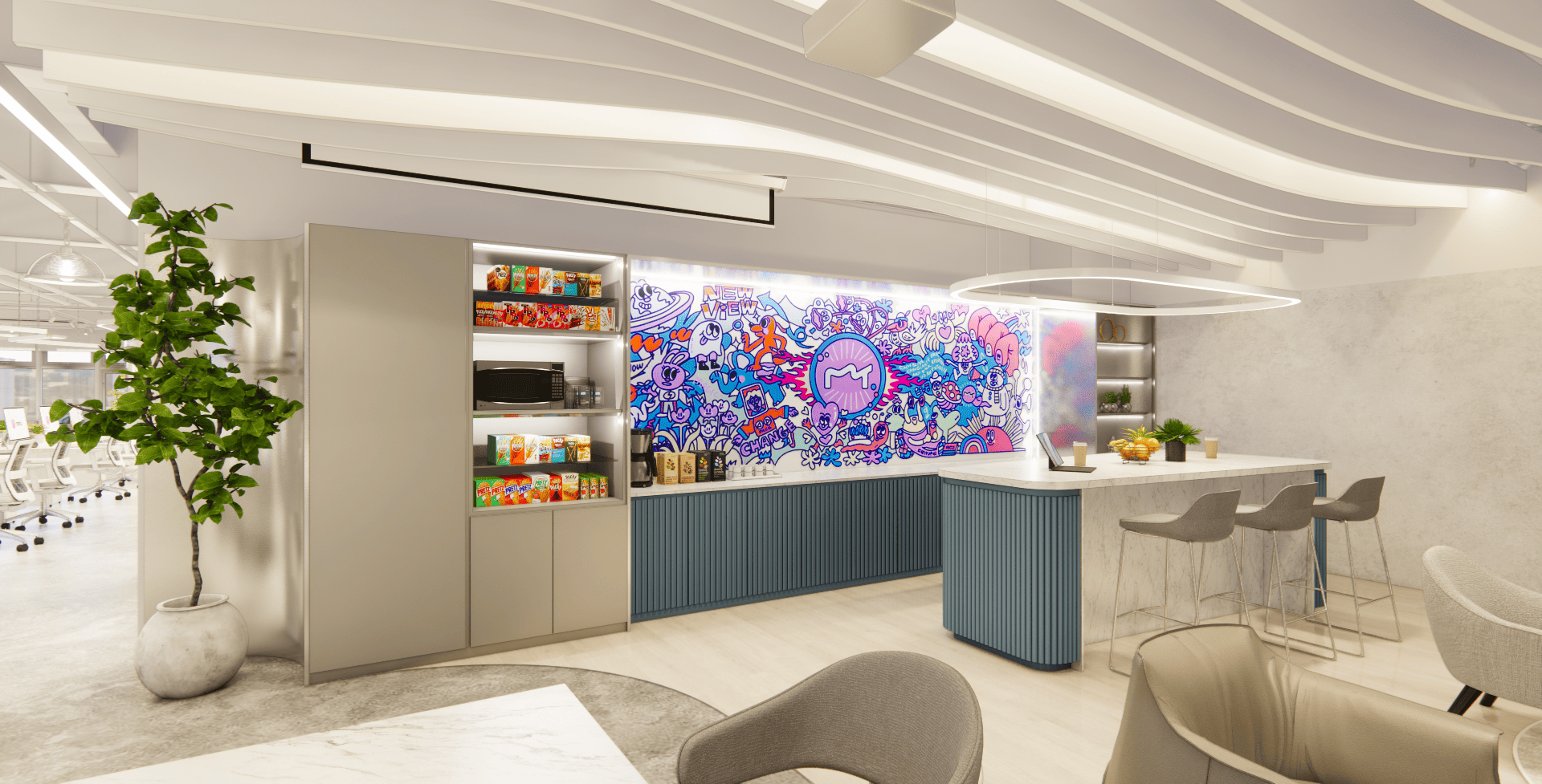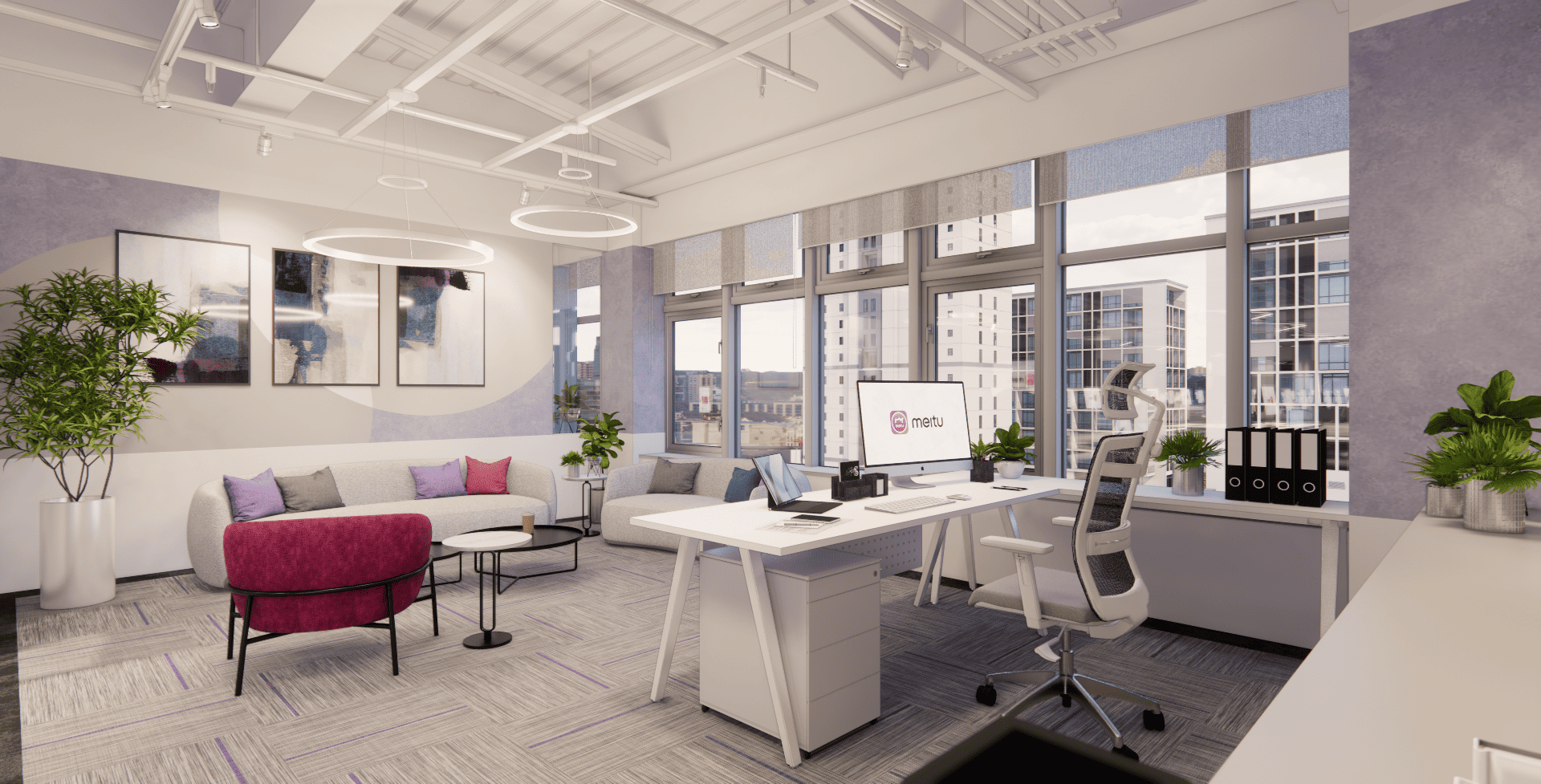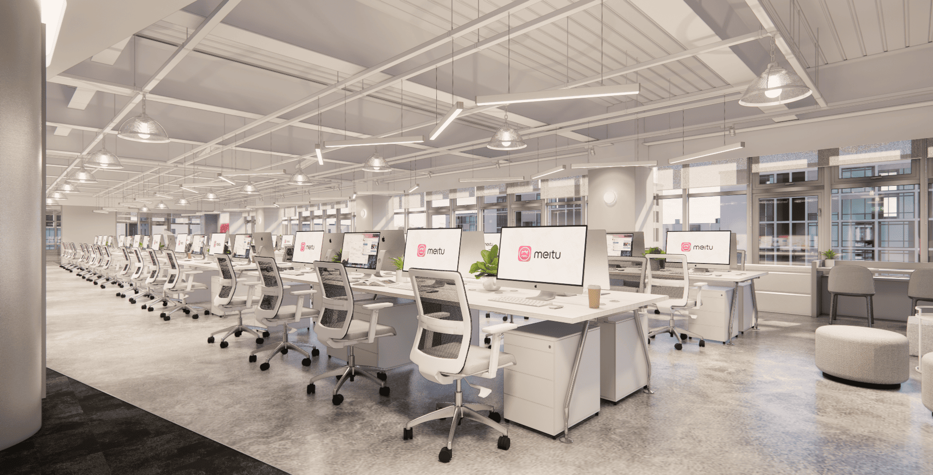 好的設計,從來不只是坐在螢幕前敲打鍵盤,而是源於對生活空間的細膩感知。走進美圖的辦公室,你會先被那如同雲朵般的流線型燈帶所吸引,光影在簡潔的白色空間中交織,彷彿思緒也在這裡得到了延展。