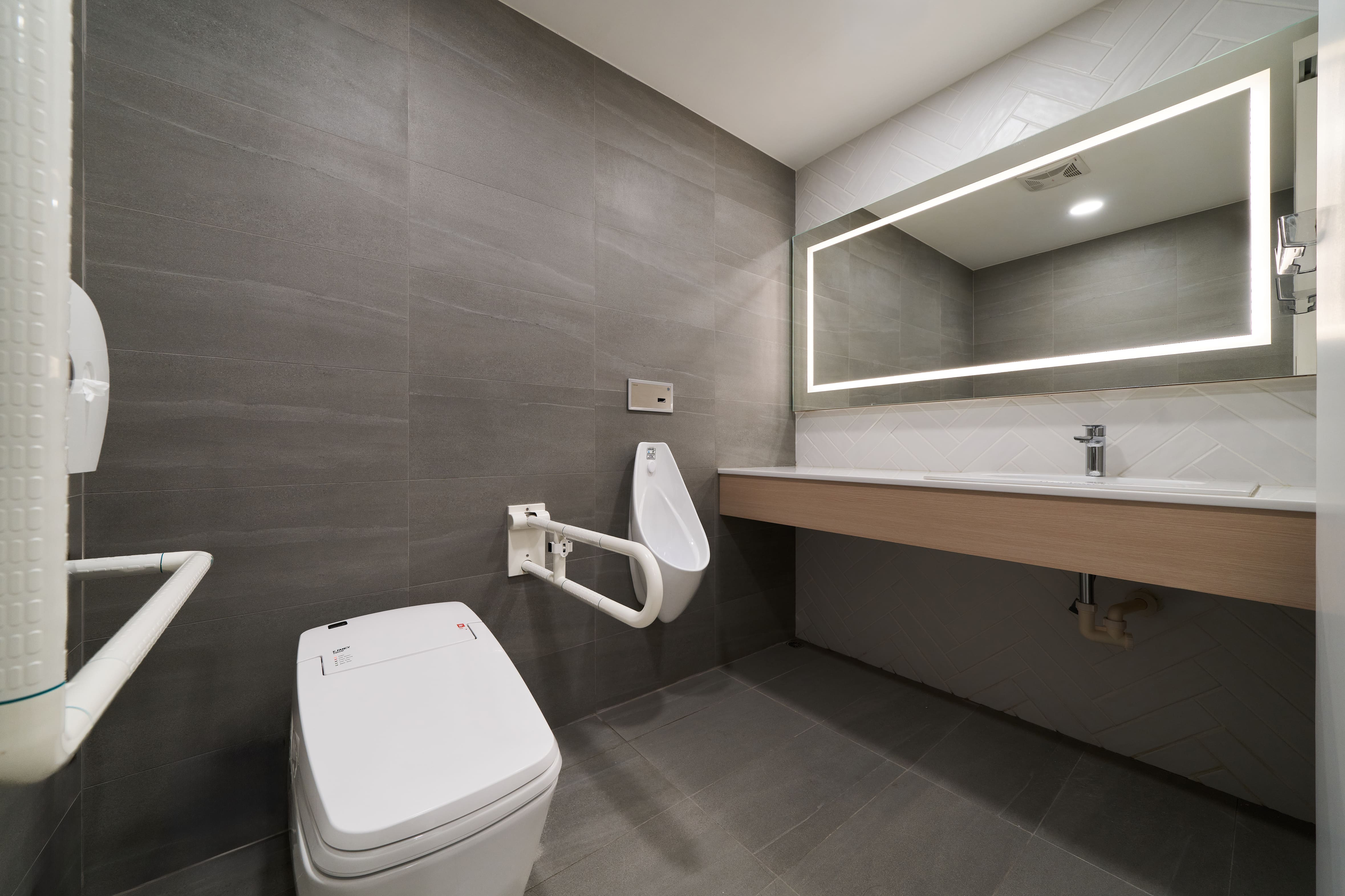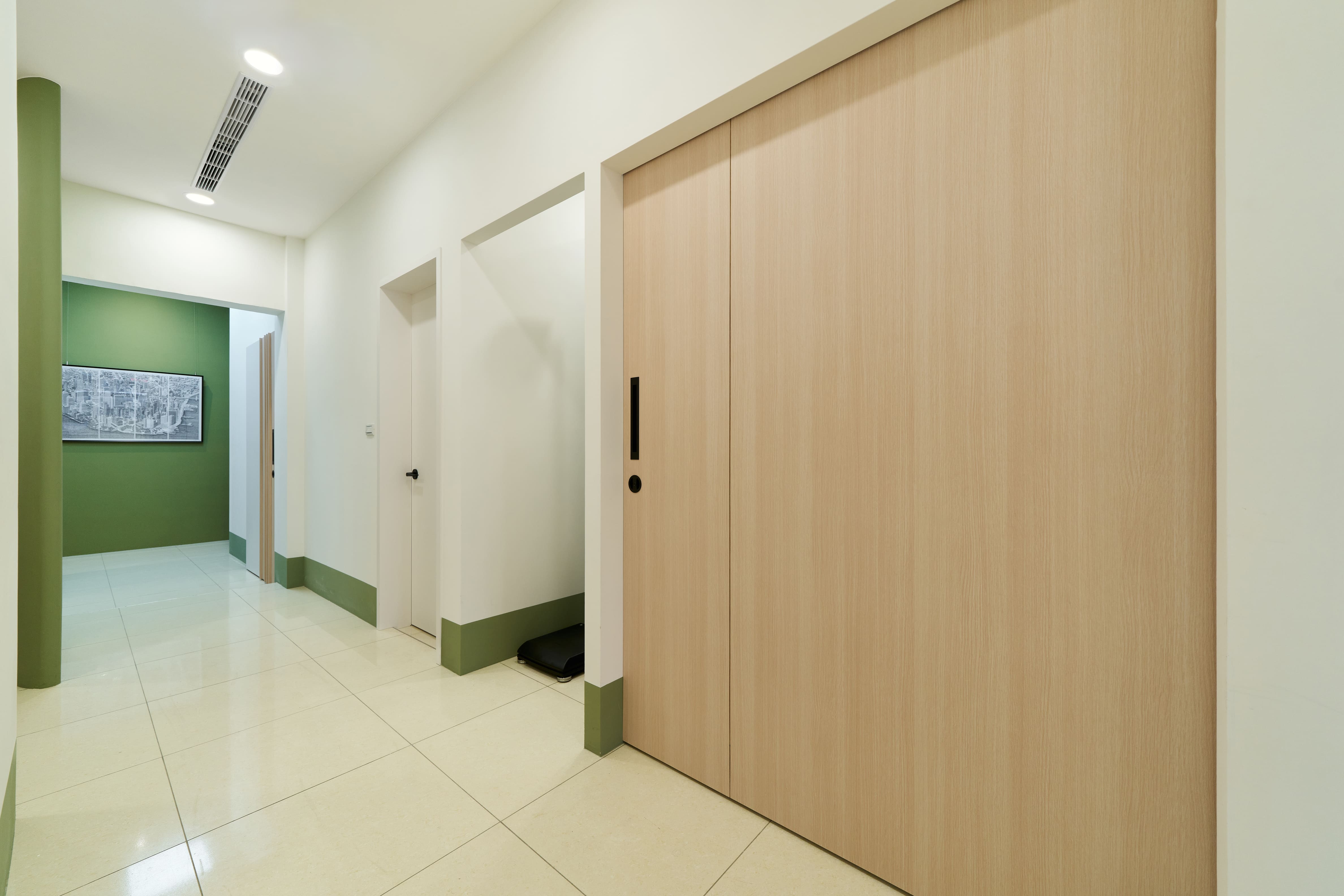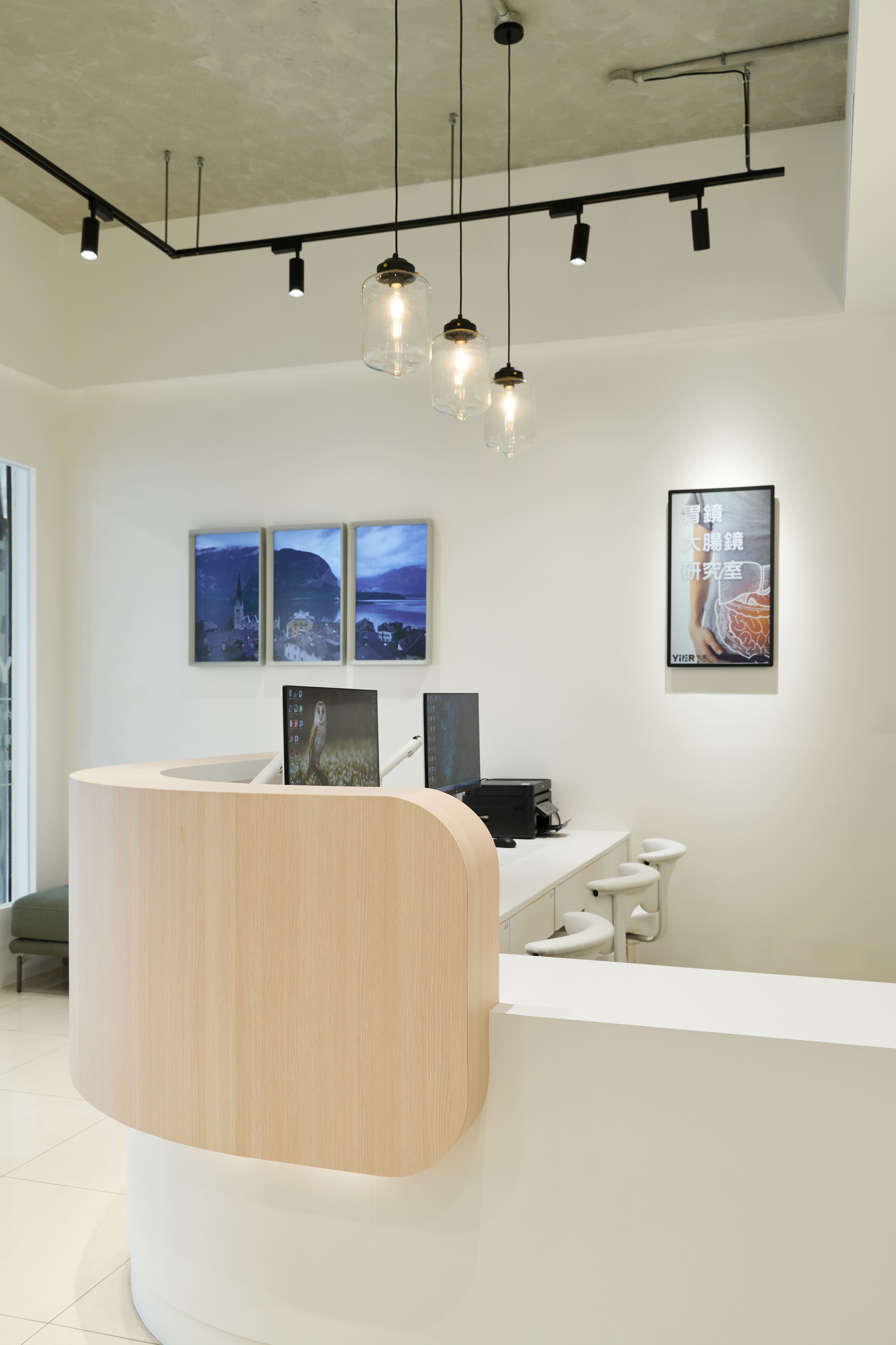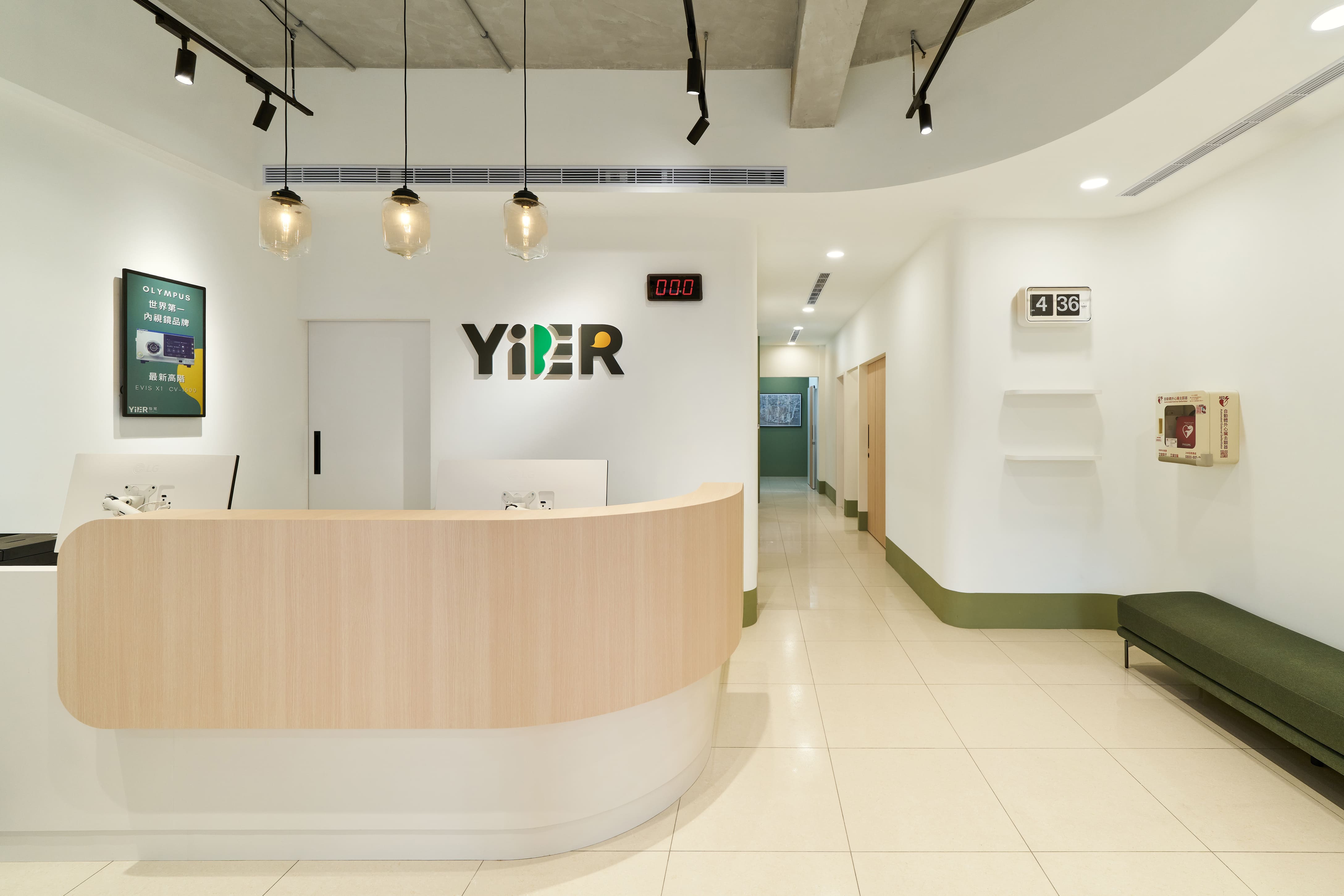 空間以沉穩的灰為底色,象徵專業與成熟的形象,而純粹的白,則為這份寧靜注入了開闊與光明,點綴其間的草地綠與溫暖黃,是空間的靈魂。綠意代表著生命的活力與多元,黃色則象徵溫暖與同理的包容。