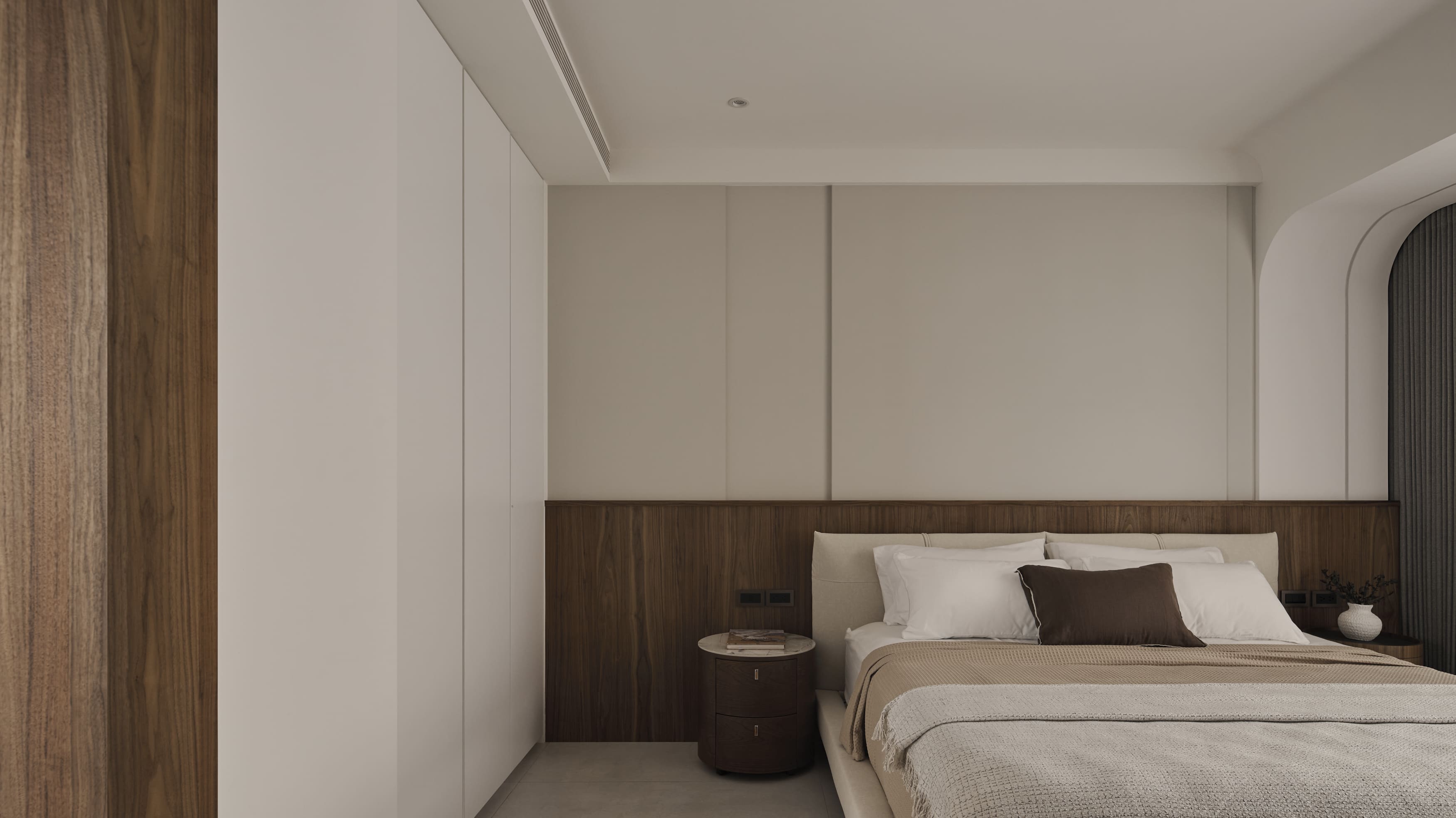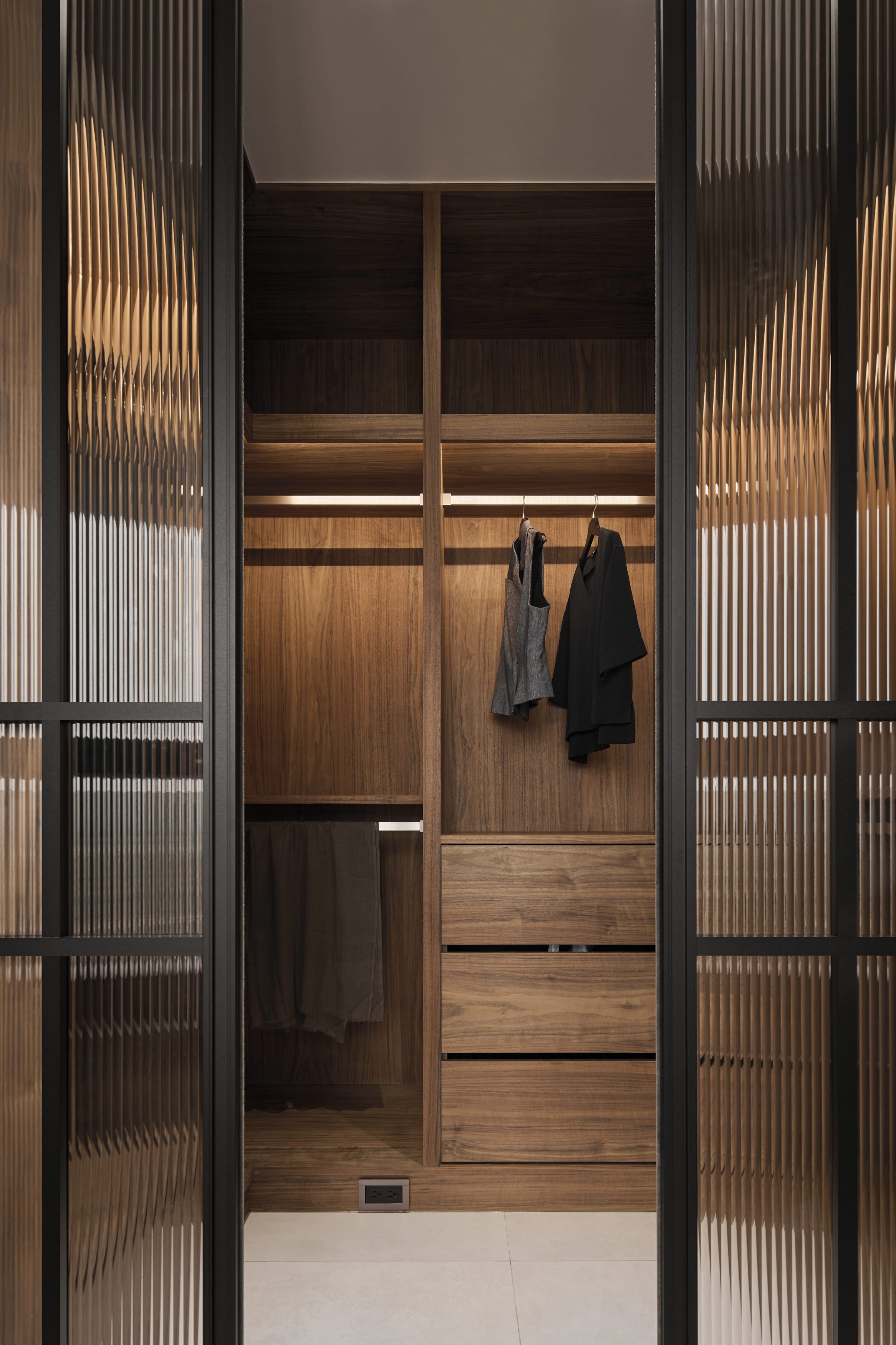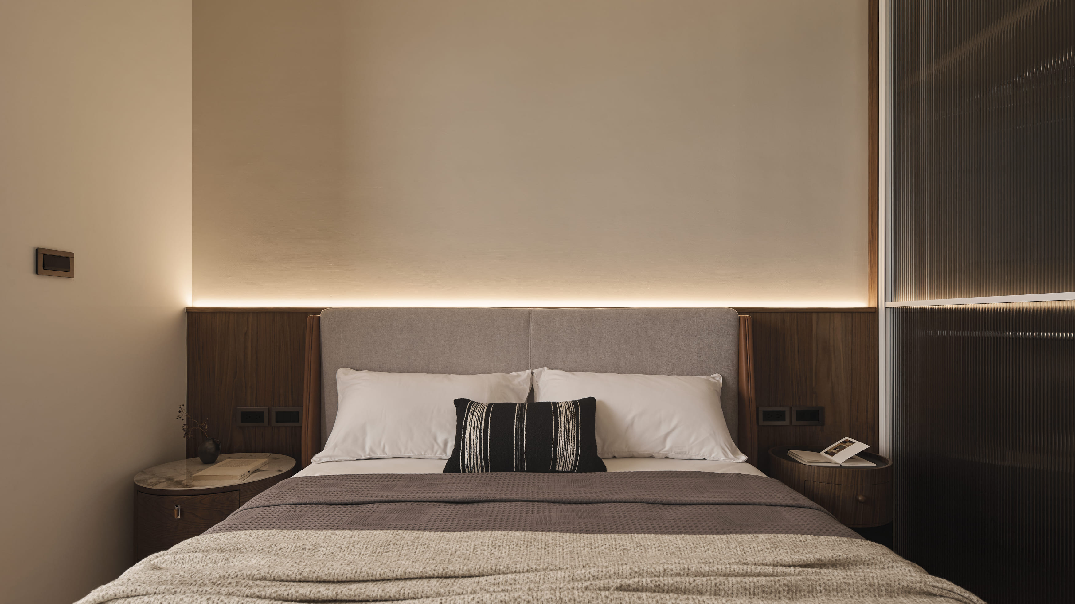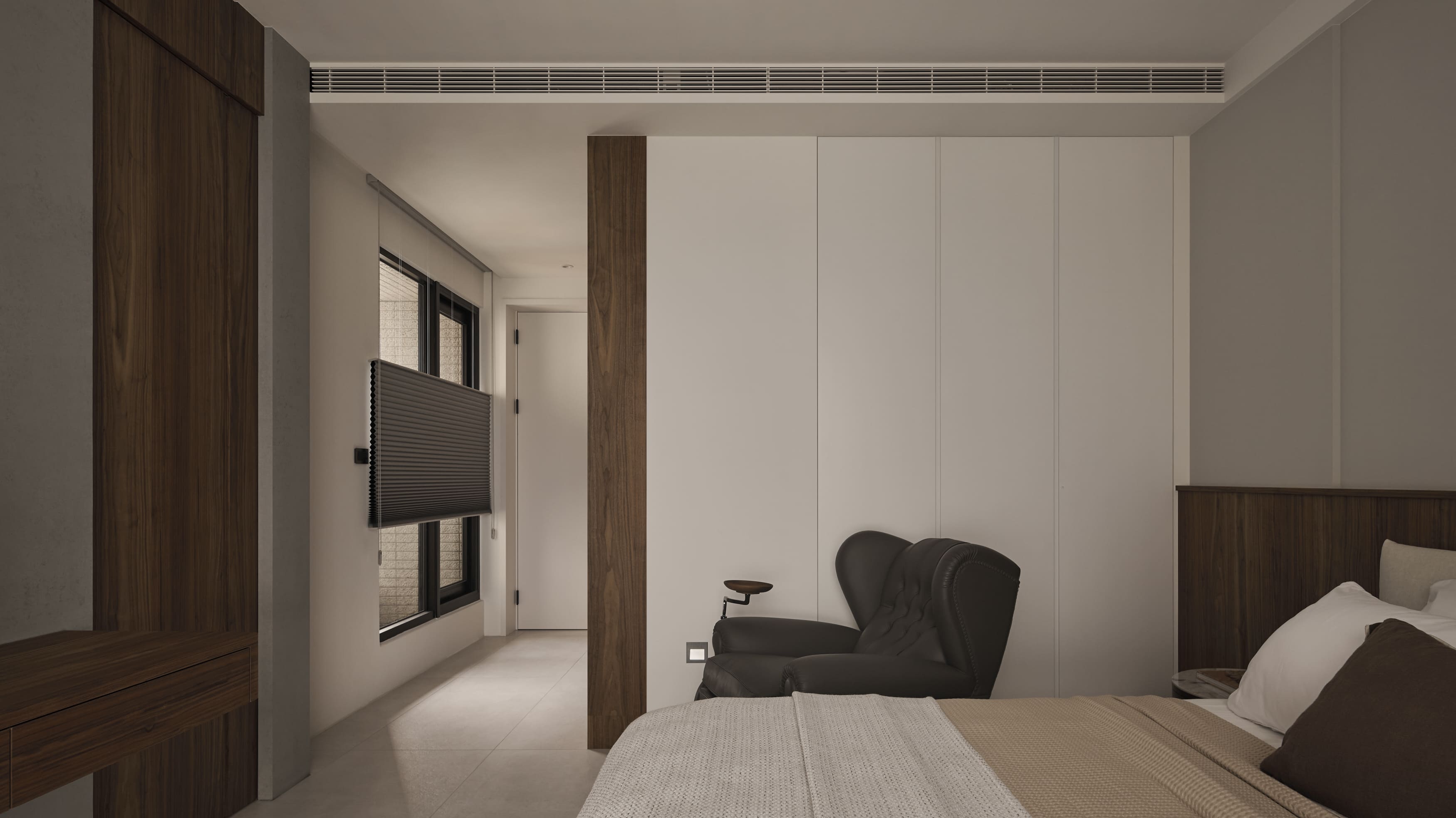 以飯店澄色為出發點,選用黑白、泥灰等山嵐色系與木皮重疊交錯,簡潔有力的線條,營造出高品質生活格調;屋內四面皆為窗戶,保留採光良好大面開窗,讓和煦陽光盡情灑入,居高環顧美景拉遠了視野,在家也有住在飯店的感受。