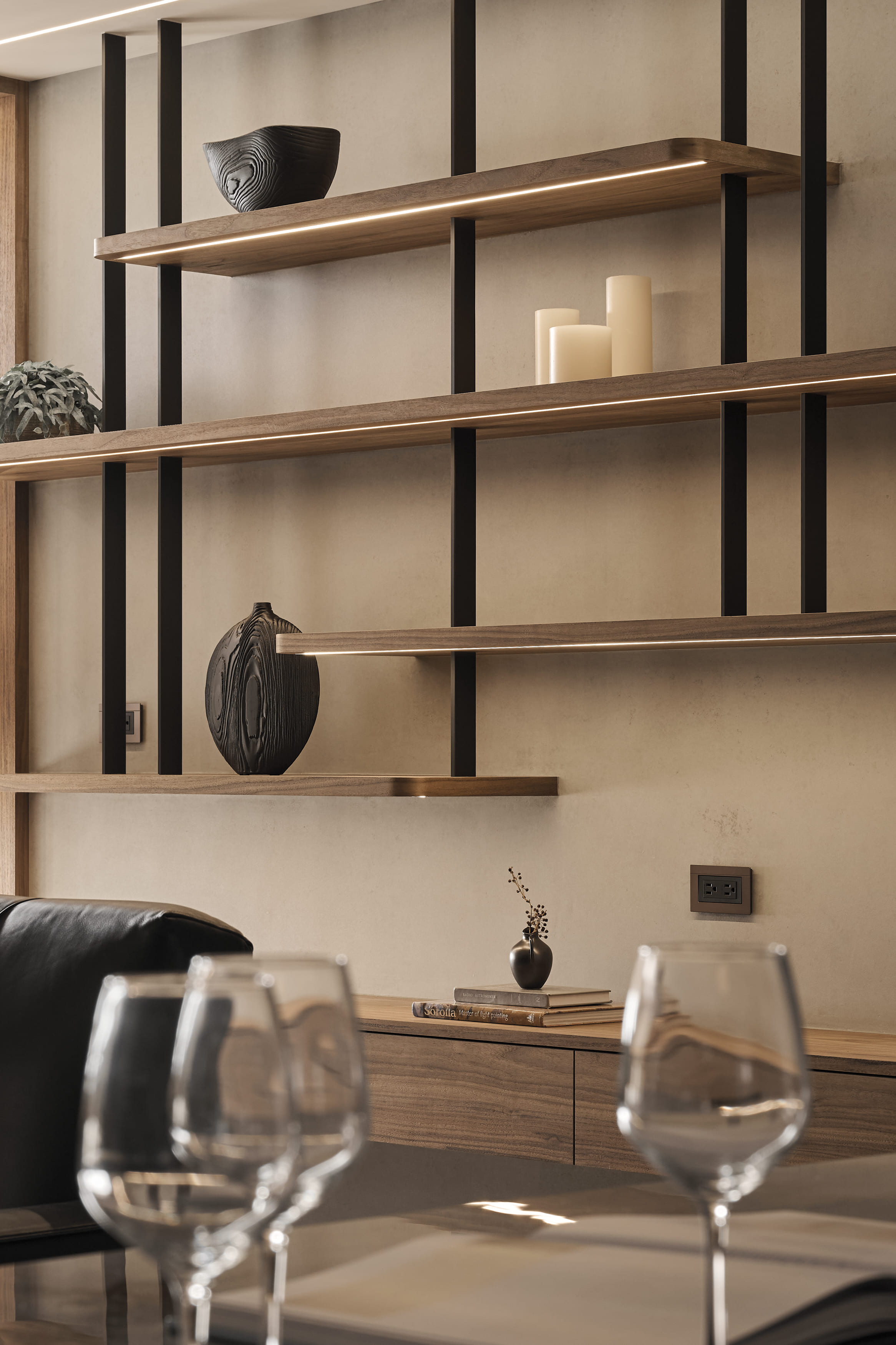 主要材料|鋼刷木皮、鐵件、鍍鈦金屬、大理石、清水模塗料